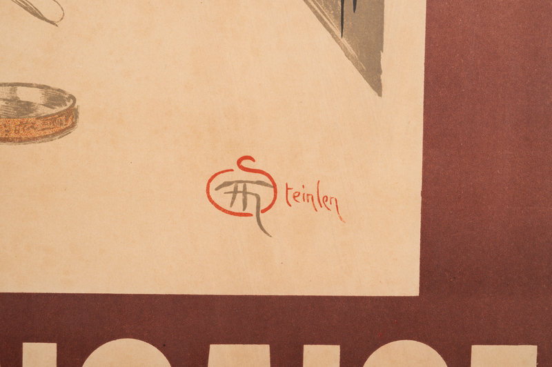, 1895brush, crayon and spatter lithograph in black, red, olive gray, yellow and brown on tan wove paper laid down on linen
