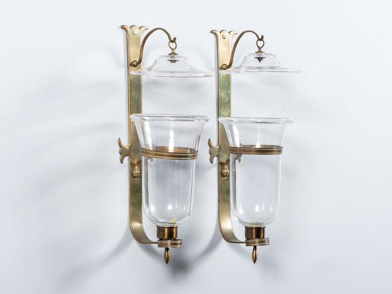A Pair of Brass and Glass Hurricane Wall Sconces