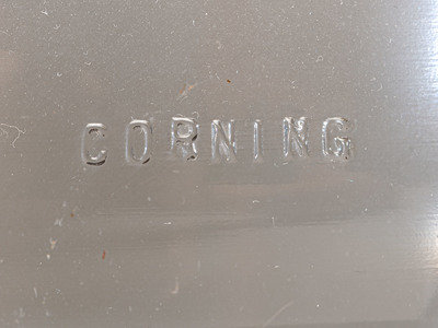 with plaque on base reading Post Lantern B and shade marked Corning.