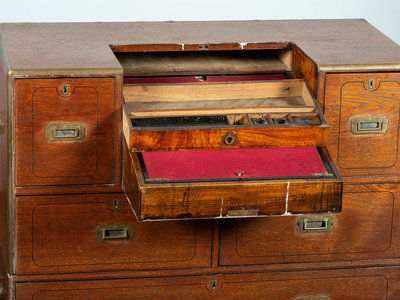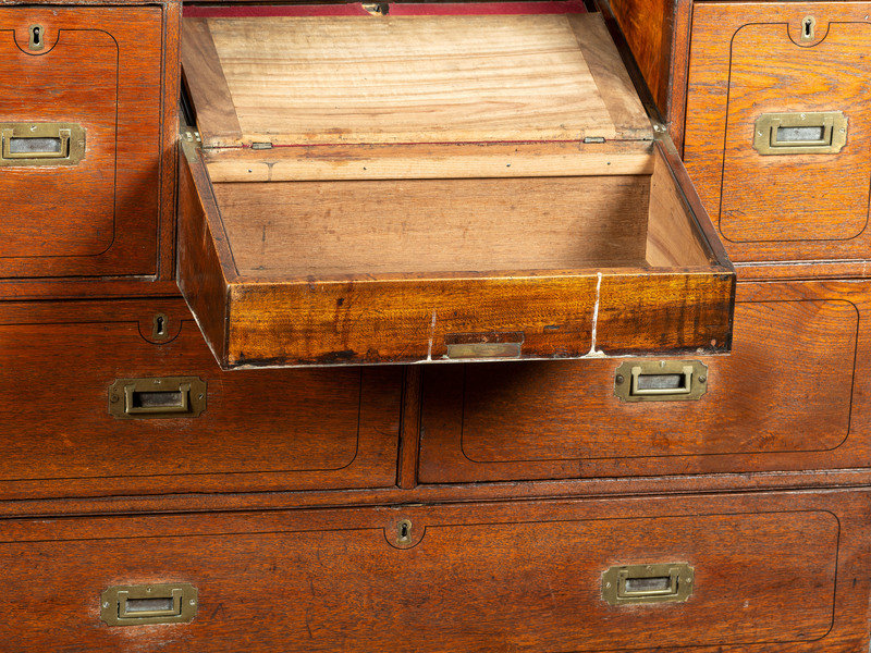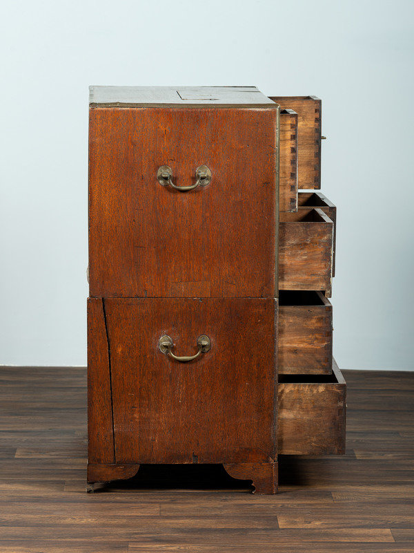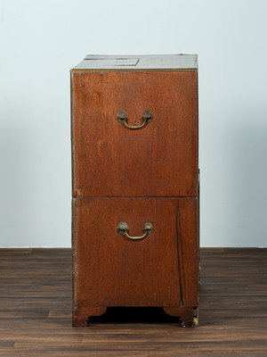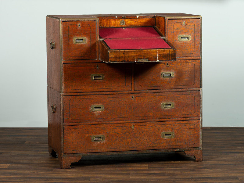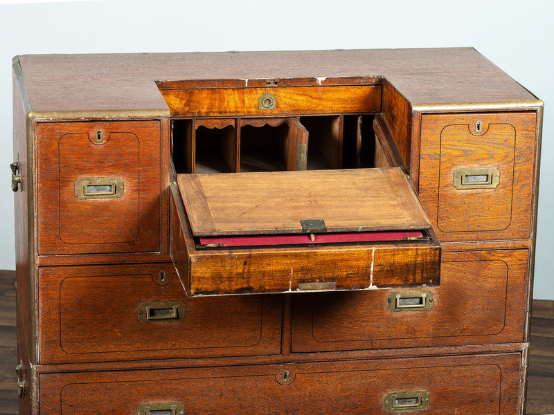 An Anglo-Colonial Brass Mounted Teak Campaign Writing Desk