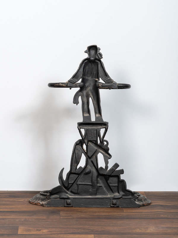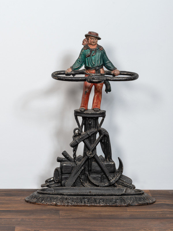 A Victorian Cold Painted Iron Umbrella Stand with Sailor Figure