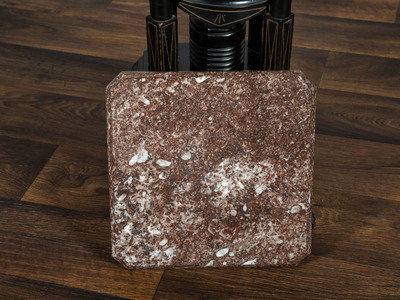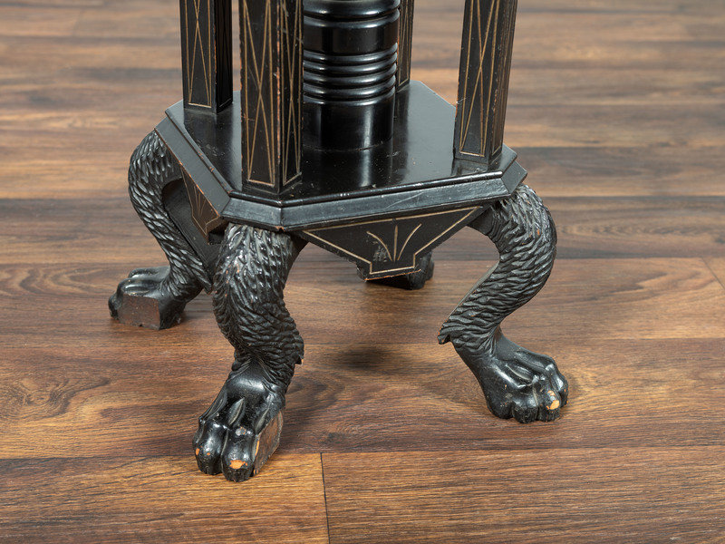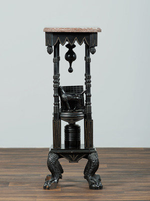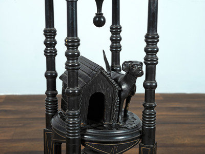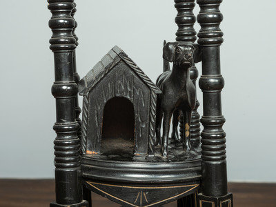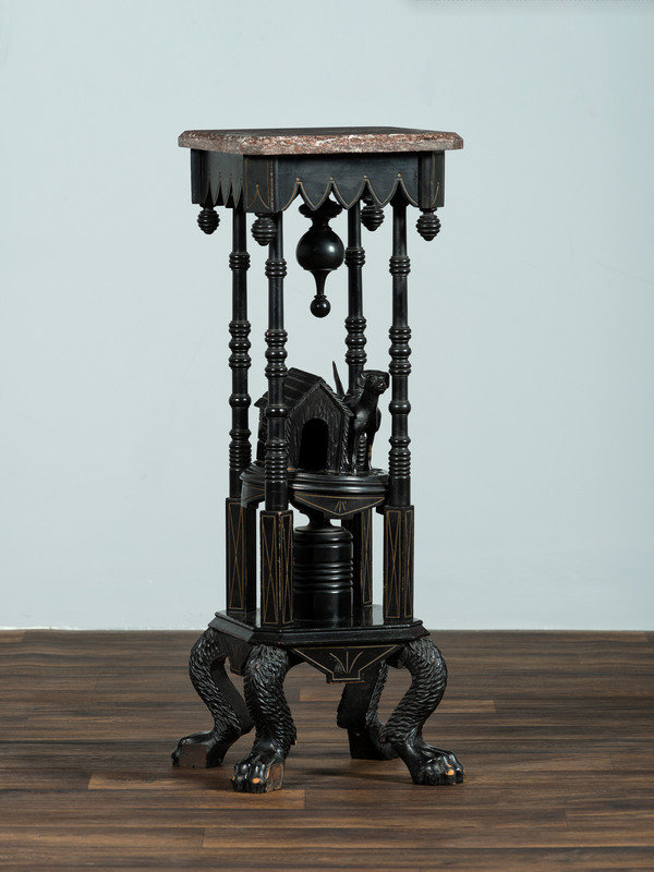 A Victorian Marble-Top Carved and Ebonized Parlor Table with Dog