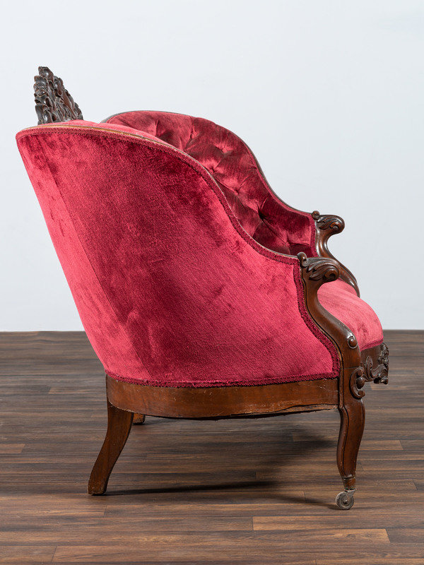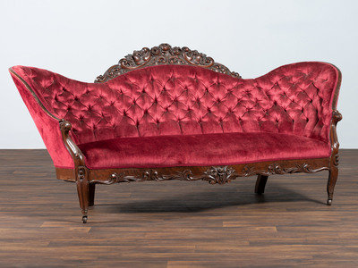 A Victorian Floral Carved Rosewood Parlor Settee