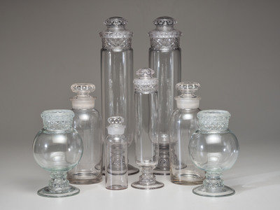 Eight Molded Glass Display Jars