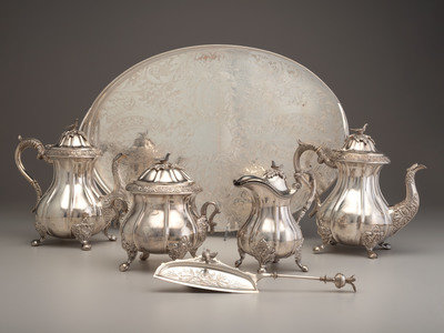 A Thomas Whartenby Coin Silver Five-Piece Tea and Coffee Service
