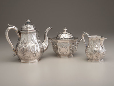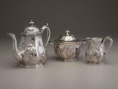 A Ball, Tompkins & Black Three-Piece Coin Silver Tea Service