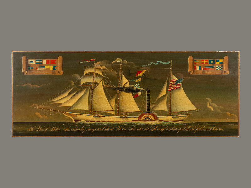inscribed An outstanding steampowered schooner. Boston, November 1864. She averaged a 12 knots speed, all sails furled on a 24 hours run