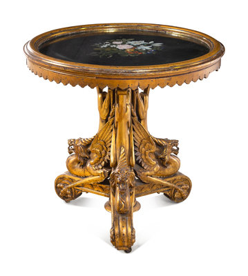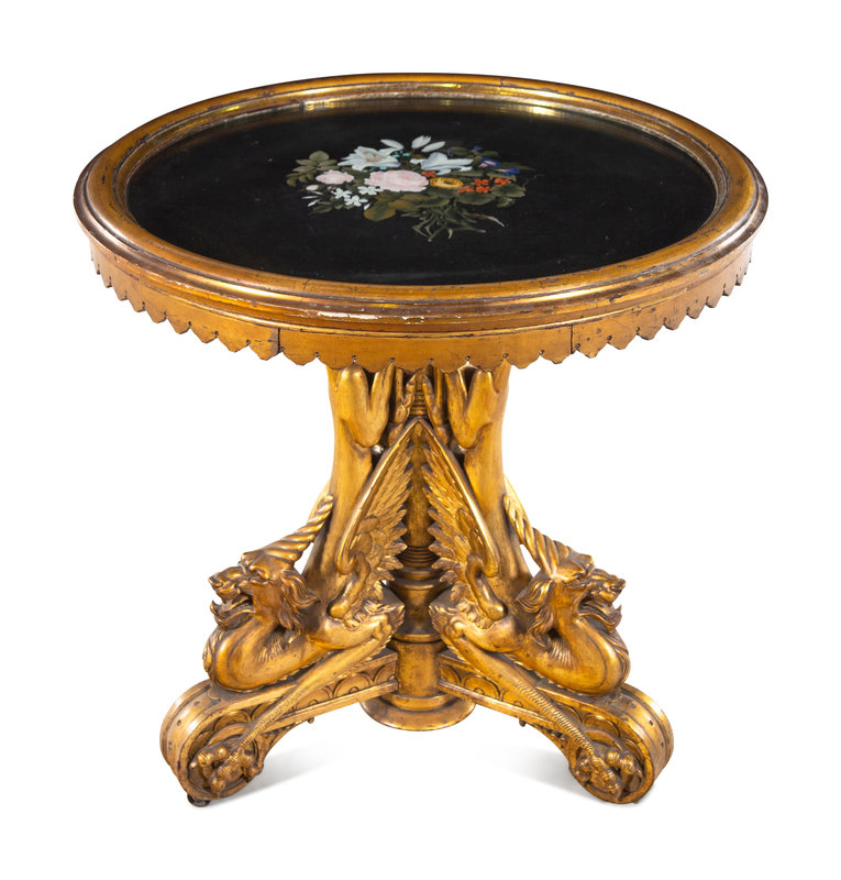An Italian Giltwood Pietra Dura-Top Table