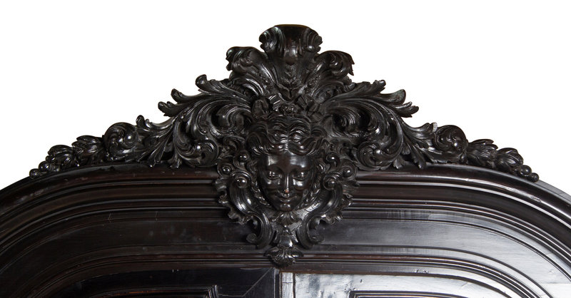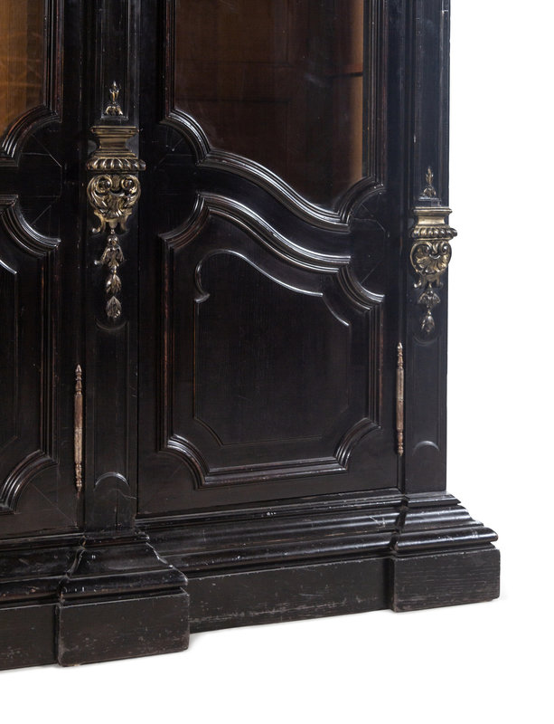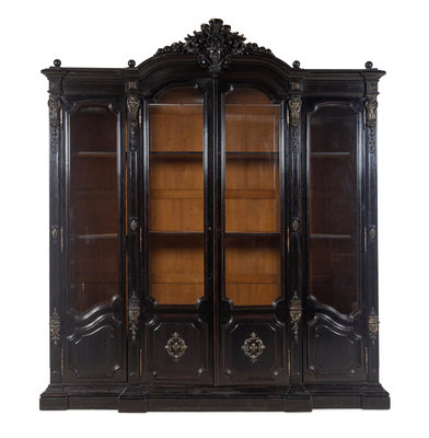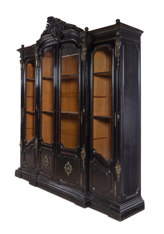 An Italian Rococo Revival Carved Ebonized Bookcase