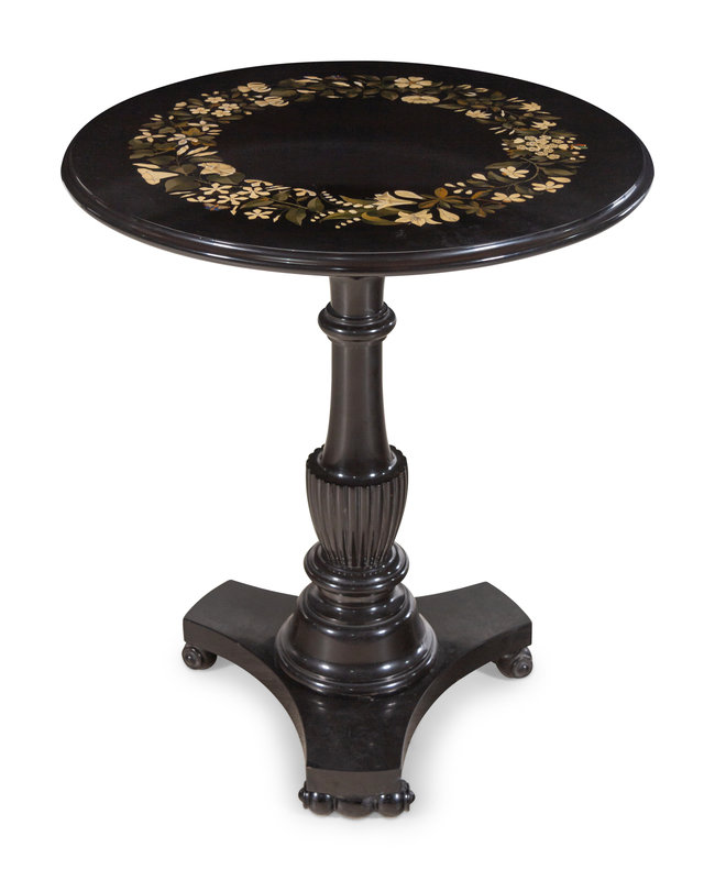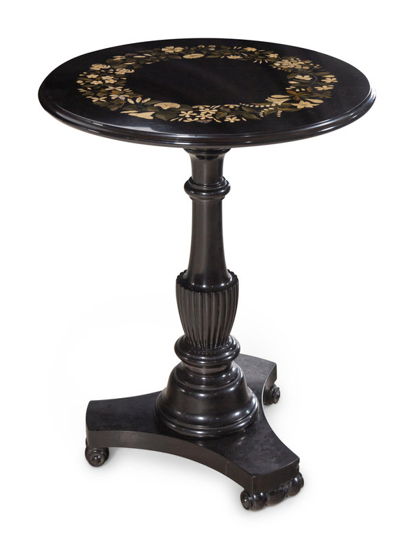 An Italian Pietra Dura Inlaid Slate Side Table