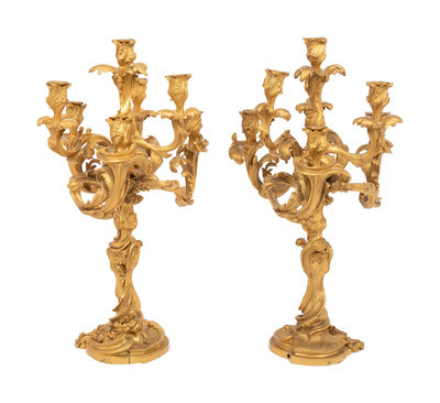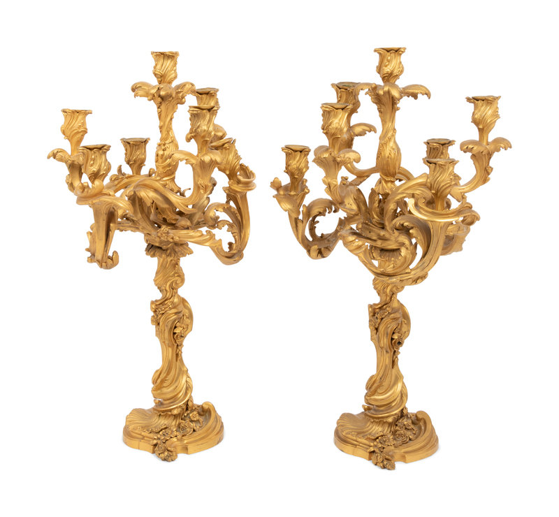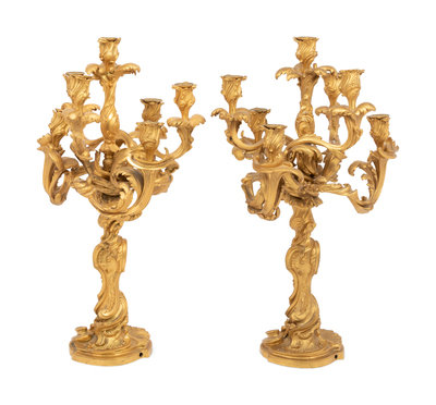 A Pair of Louis XV Style Gilt Bronze Seven-Light Candelabra