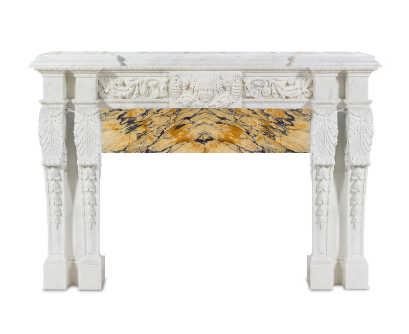 An Italian Baroque Style Carved White and Rosso Levanto Marble Chimneypiece