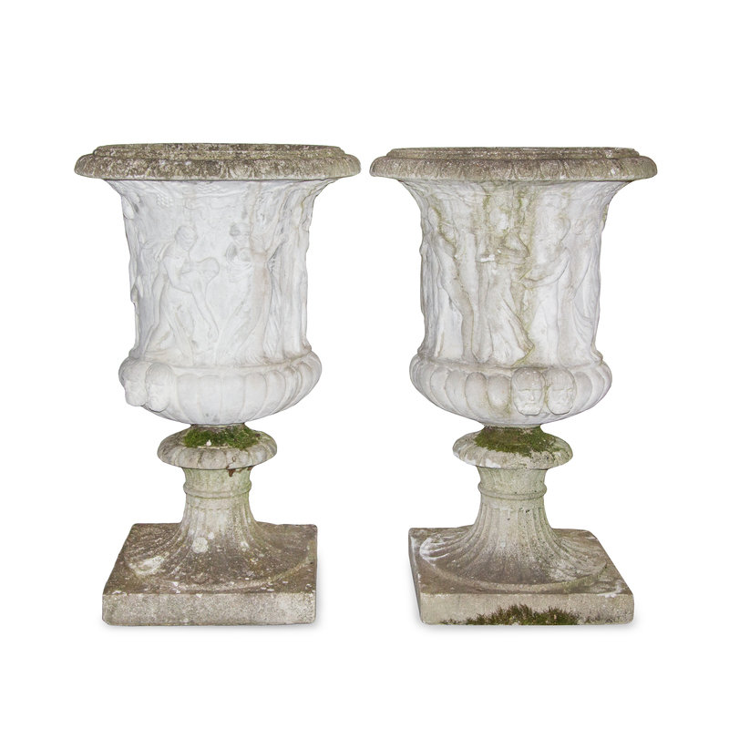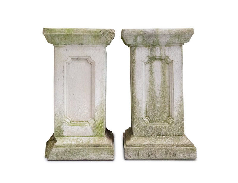 A Pair of Neoclassical Style Cast Stone Jardinières on Plinths