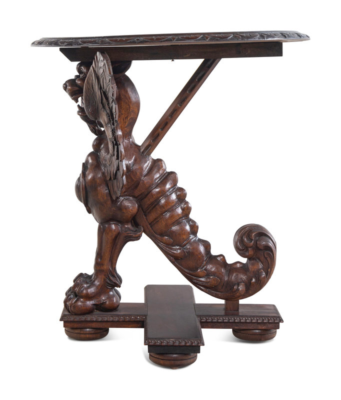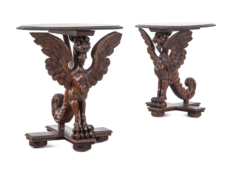A Pair of Continental Baroque Style Carved Walnut Griffin Tables