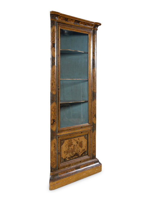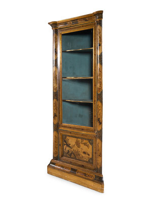A Pair of Continental Chinoiserie Decorated Corner Cabinets