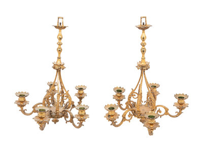 A Pair of Dutch or German Gilt Bronze Five-Light Hanging Wall Lights