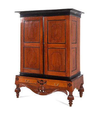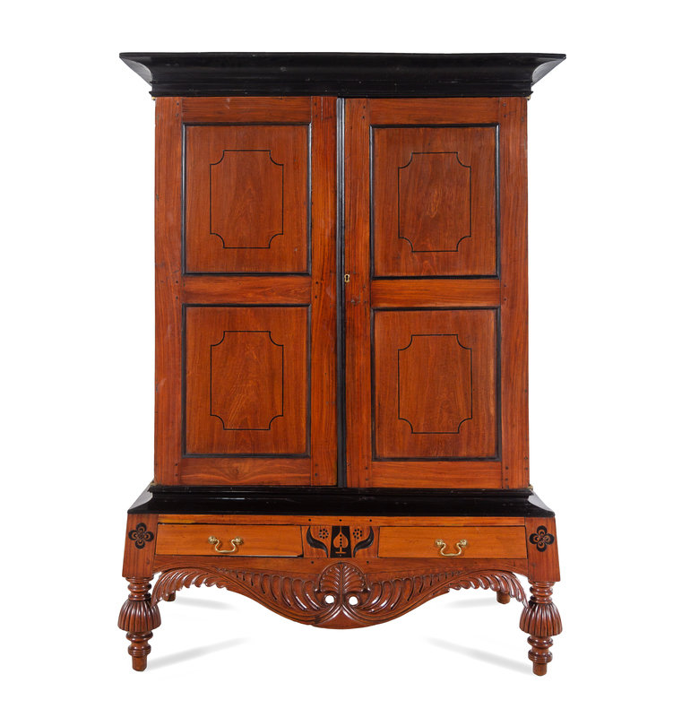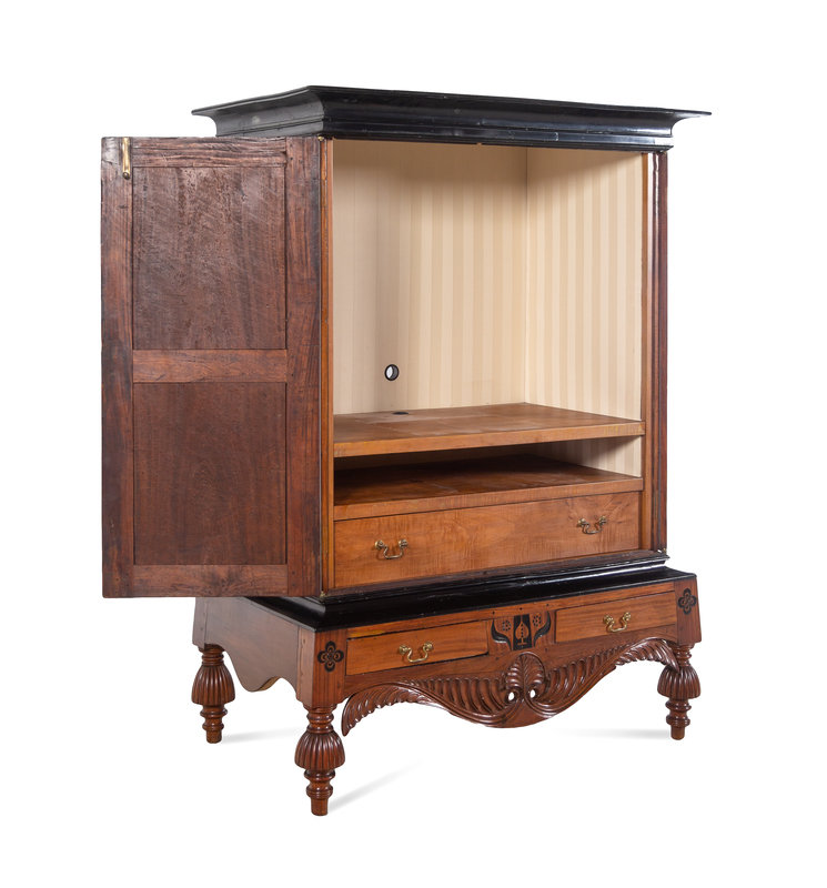 An Indo-Portuguese Parcel Ebonized Walnut Armoire