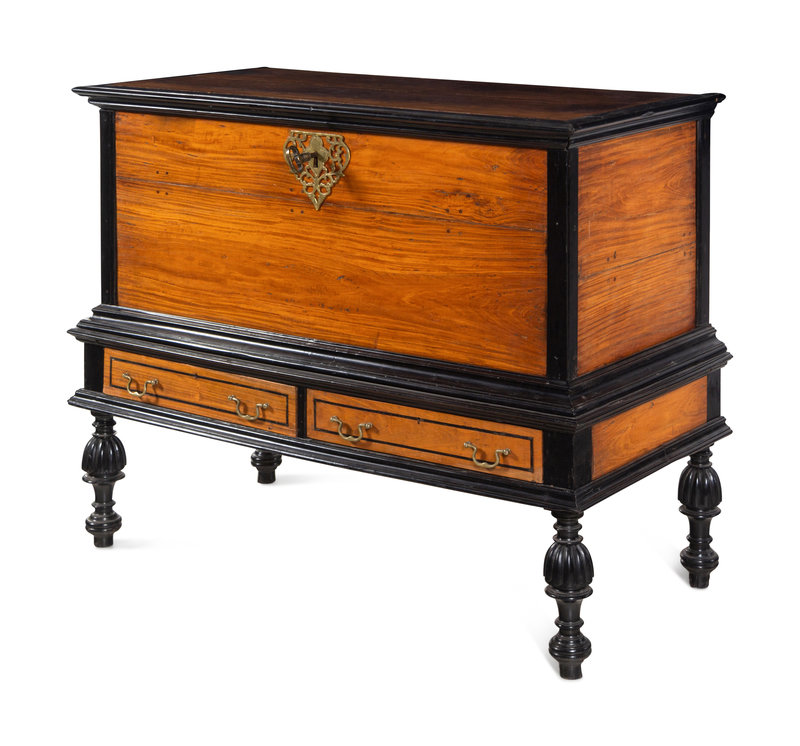 An Indo-Portuguese Ebony and Satinwood Trunk