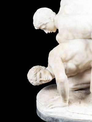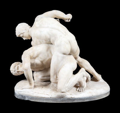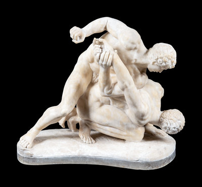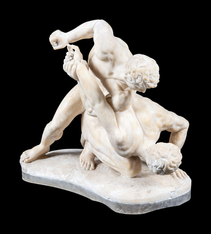 A Carved Alabaster Figural Group of The Wrestlers After the Antique