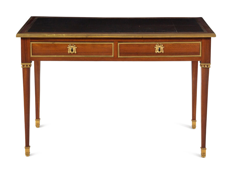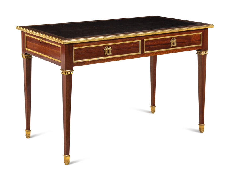 A Louis XVI Gilt Bronze Mounted Mahogany Bureau Plat by Claude-Charles Saunier (French, 1735-1807)