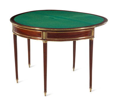 A Louis XVI Brass Mounted Mahogany Flip-Top Pier Table
