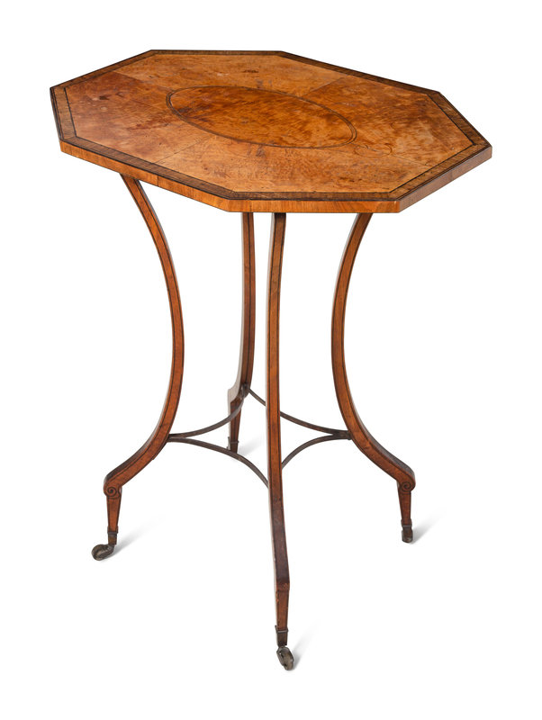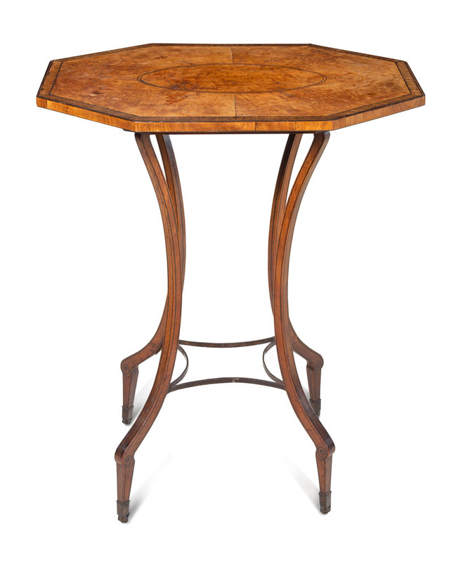 A Regency Inlaid and Brass Mounted Satinwood and Rosewood Octagonal Top Occasional Table