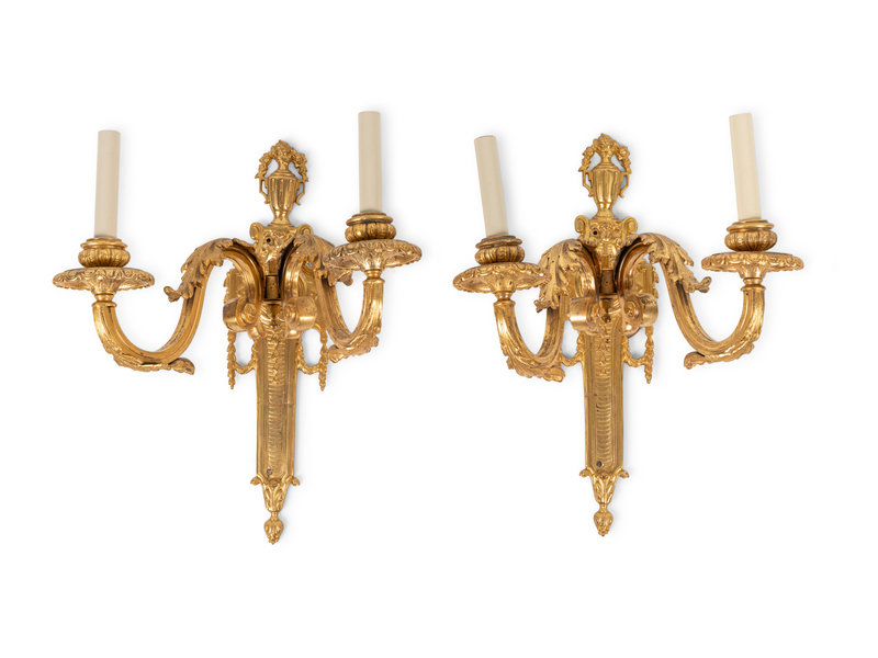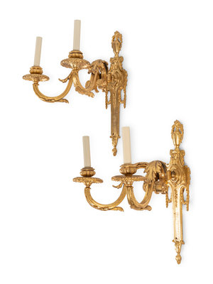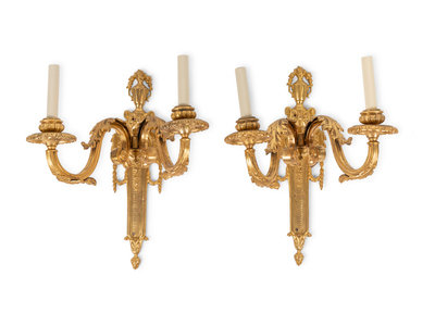 A Pair of Louis XVI Style Gilt Bronze Two-Light Sconces