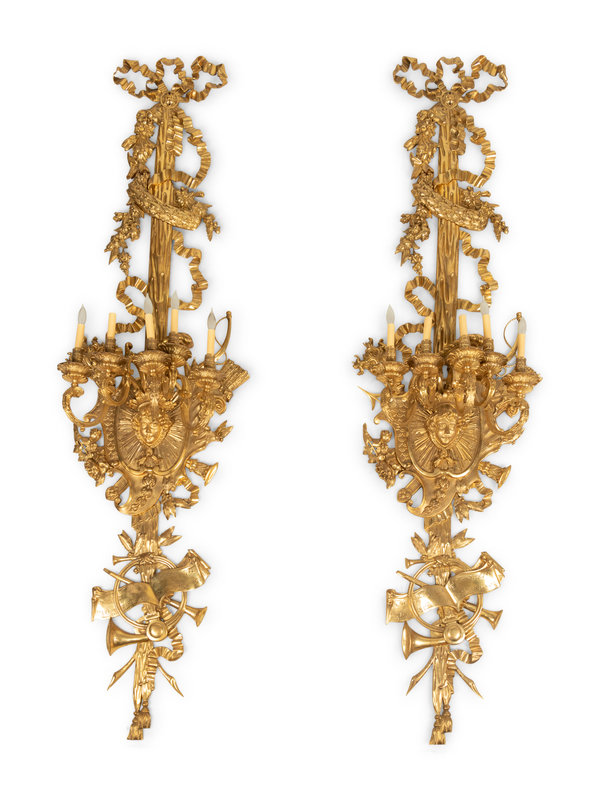 A Set of Four Louis XVI Style Gilt Bronze Five-Light Sconces
