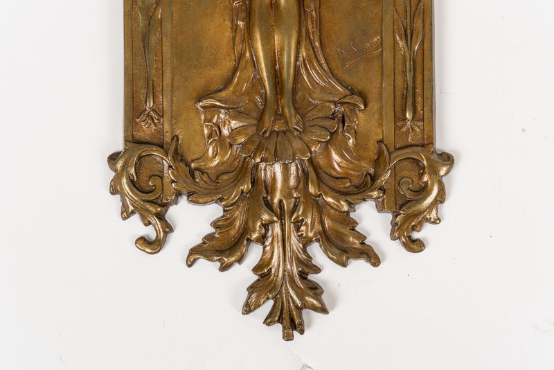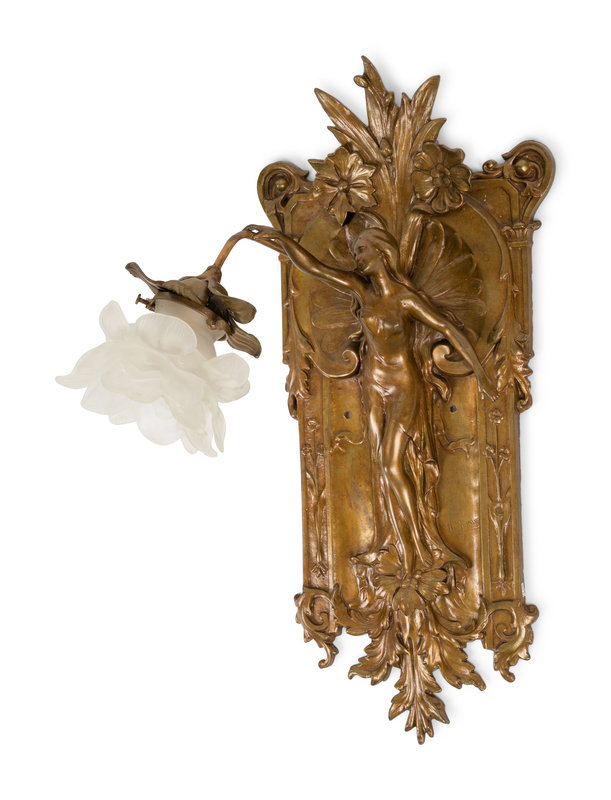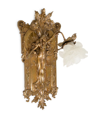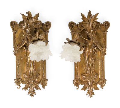 A Pair of Bronze Art Nouveau Figural Wall Sconces by Théophile François Somme (French, 1871-1952)