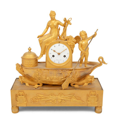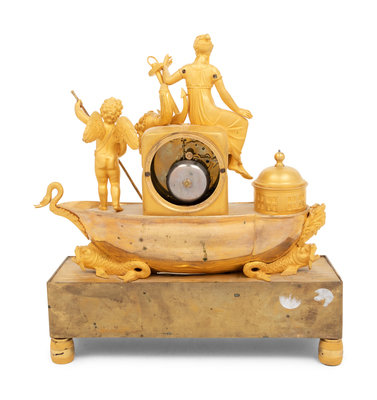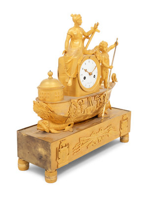 An Empire Gilt Bronze Figural Mantel Clock