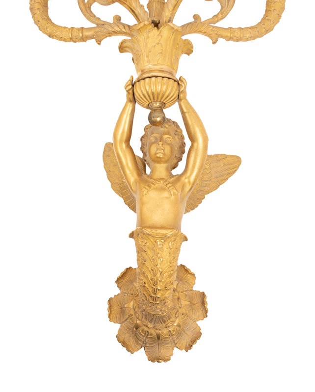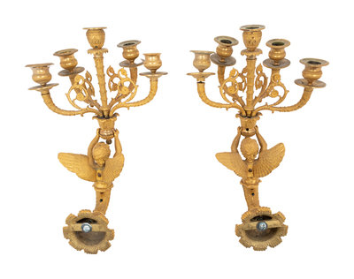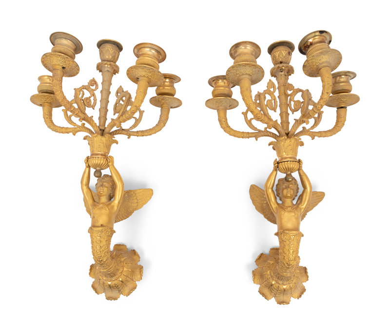 A Pair of Empire Gilt Bronze Five-Light Wall Lights