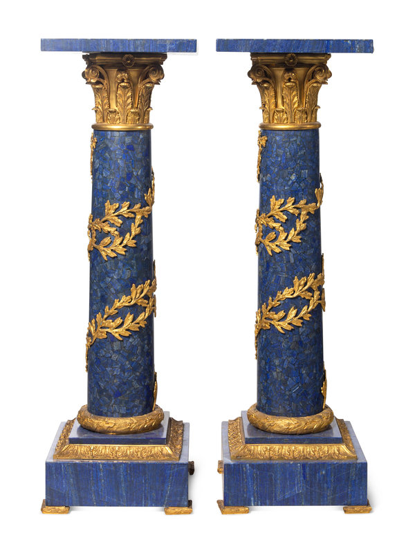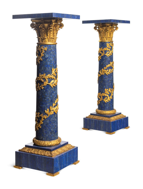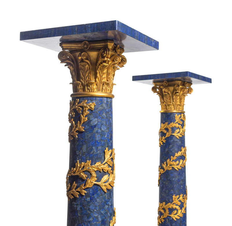 A Pair of Empire Style Gilt Bronze and Lapis Lazuli Pedestals