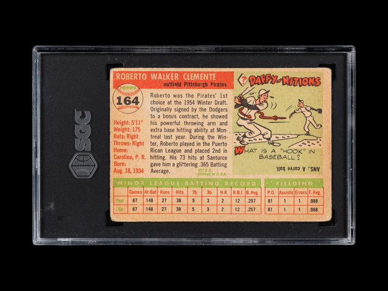 A 1955 Topps Roberto Clemente Rookie Baseball Card No. 164 (SGC 2 GOOD)