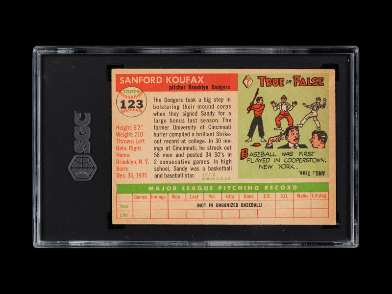 A 1955 Topps Sandy Koufax Rookie Baseball Card No. 123 (SGC 4.5 VG/EX+)