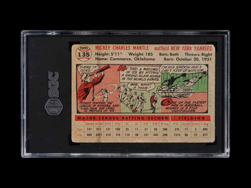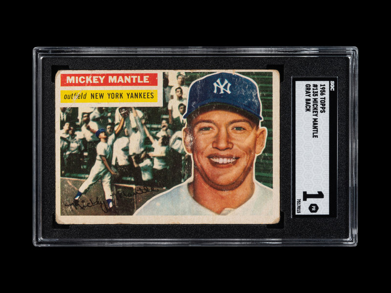 A 1956 Topps Mickey Mantle Baseball Card No. 1 Gray Back (SGC 1)