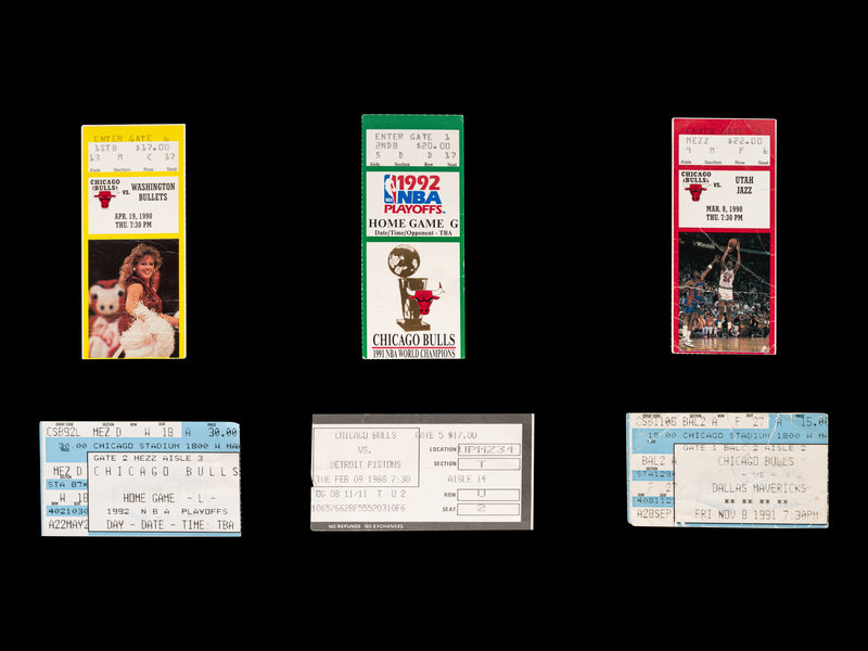 A Group of Six 1980s-90 Michael Jordan Chicago Bulls Ticket Stubs,