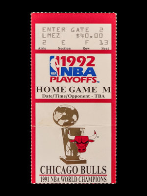A 1992 Chicago Bulls vs. Portland Trail Blazers NBA Finals Game 6 Ticket Stub (Michael Jordan and Bulls Win Second NBA Championship)