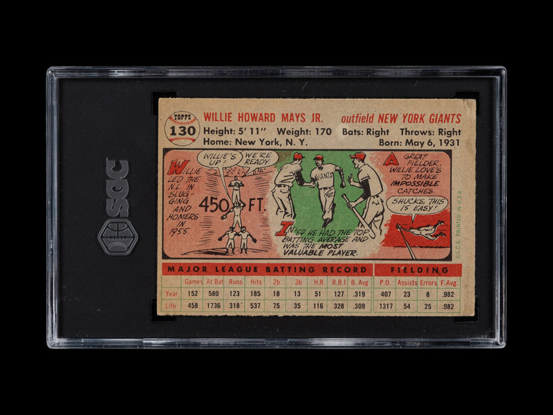 A 1956 Topps Willie Mays Baseball Card No. 130 Gray Back (SGC 5.5 EX+)