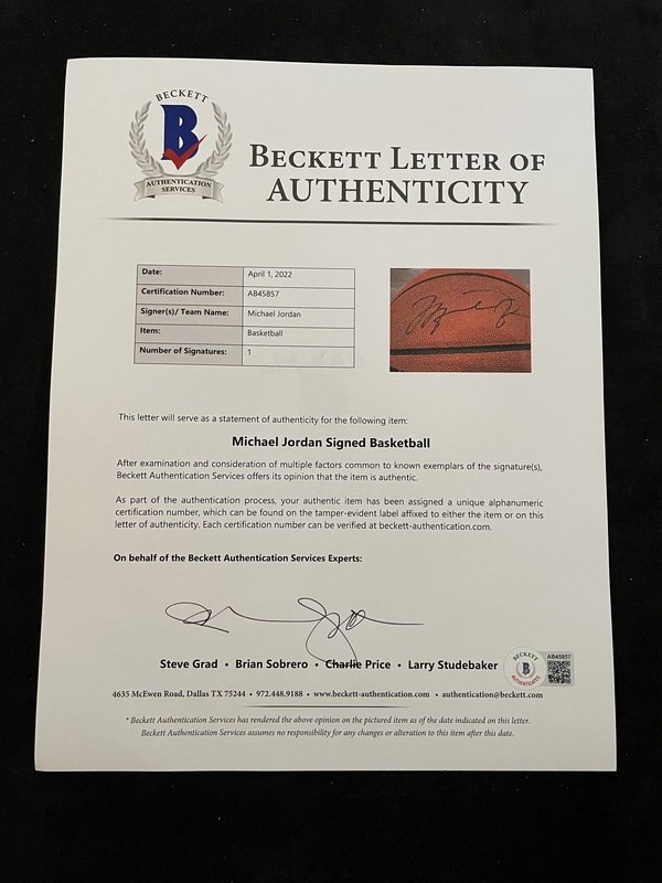 A Michael Jordan Signed Autograph Wilson Basketball (Beckett Authentication Services Letter BAS Certified),
