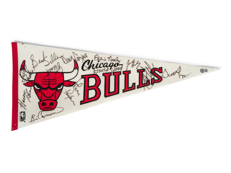 A 1988-89 Chicago Bulls Team Signed Autograph Pennant Including Michael Jordan (Beckett Authentication Services BAS Certified),