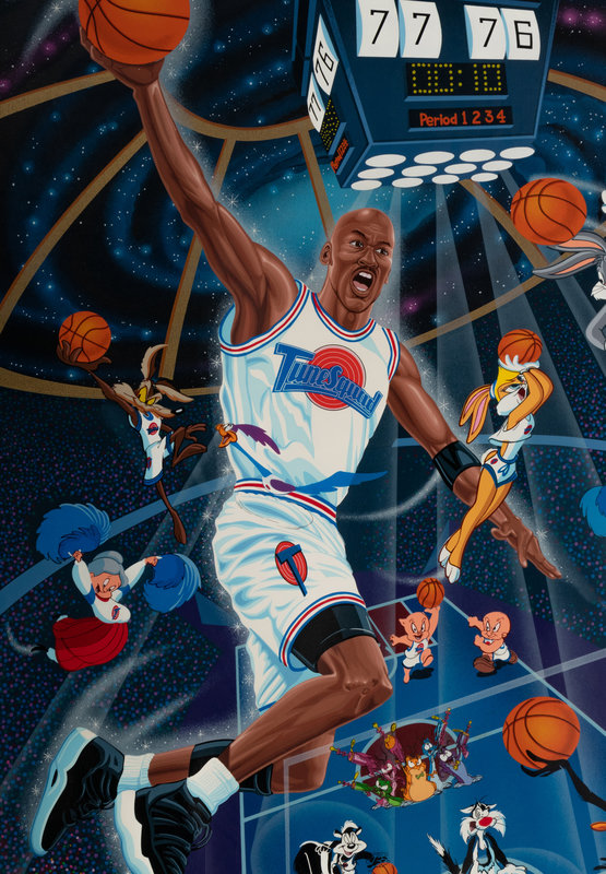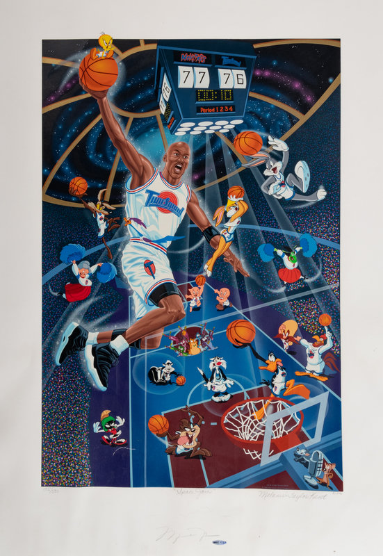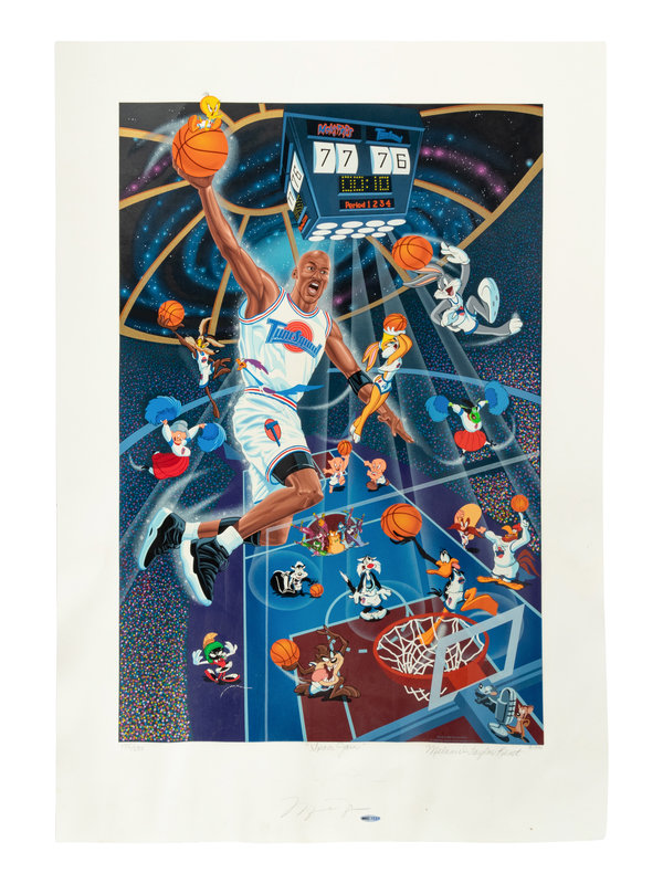 A Michael Jordan Signed Autograph Upper Deck Print and Family Invitation / Tickets to Space Jam Premiere,