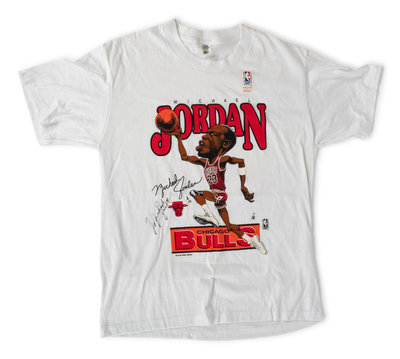 A Vintage Michael Jordan Signed Autograph Caricature Shirt (Beckett Authentication Services BAS Certified),