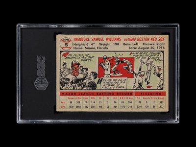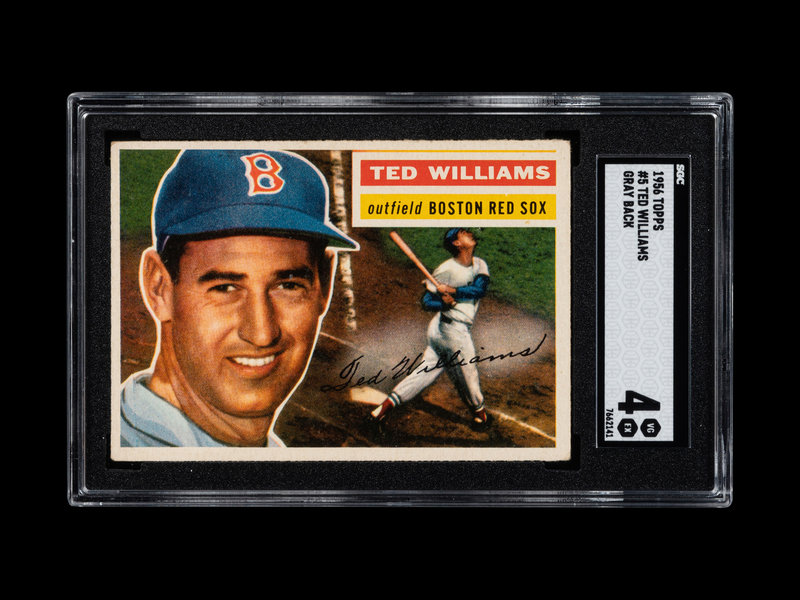 A 1956 Topps Ted Williams Baseball Card No. 5 Gray Back (SGC 4 VG/EX)