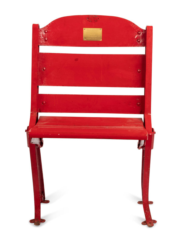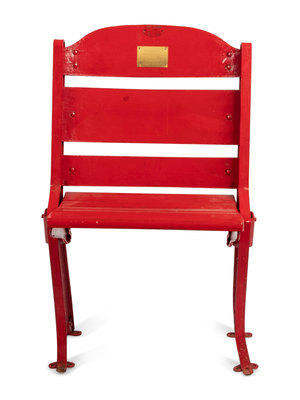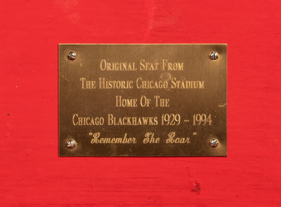 with plaque inscribed "Original Seat From The Historic Stadium Home Of The Chicago Blackhawks 1929-1994 Remember The Roar"