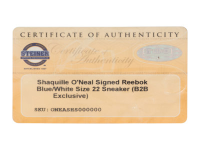 A Shaquille O'Neal Signed Autograph Reebok Size 22 Basketball Shoe (Steiner),