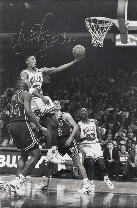 inscribed "Scottie Pippen Best Wishes" in silver ink.