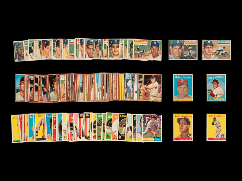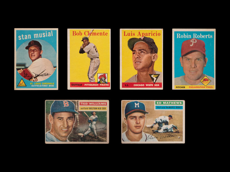 A Group of Assorted 1956, 1958, 1959, 1961, 1962 Topps Baseball Cards Including Ted Williams and Roberto Clemente,