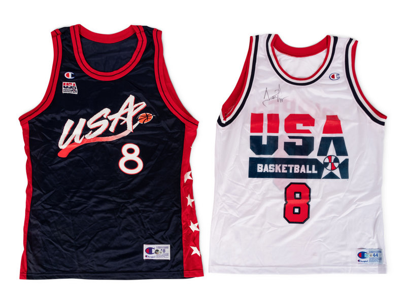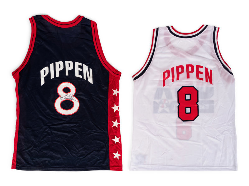 comprising a 1992 USA Basketball jersey inscribed "Scottie Pippen" in black ink on front of jersey and a 1996 USA Basketball jersey inscribed "Scottie Pippen" inside number 8 on back of jersey.