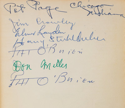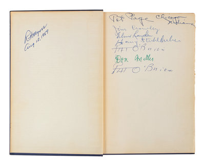comprising signatures of Harry Stuhldreher, Don Miller, Jim Crowley, Elmer Layden, Pat O'Brien (two signatures), Page Pate and R.H. Myers.