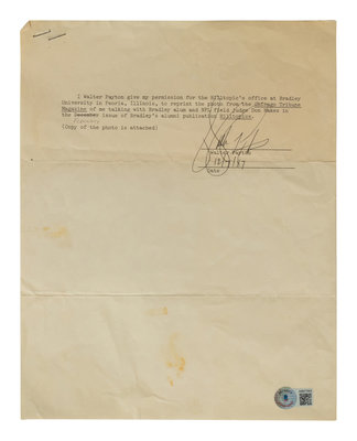 A Walter Payton Signed Autograph Document During His Last NFL Season (Beckett Authentication Services BAS Certified),